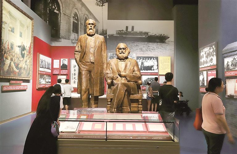 在五千多年中华文明深厚基础上开辟和发展中国特色社会主义,把马克思主义基本原理同中国具体实际、同中华优秀传统文化相结合是必由之路。图为近日,观众在中国共产党历史展览馆参观“不忘初心、牢记使命”党史展。图片来源:视觉中国